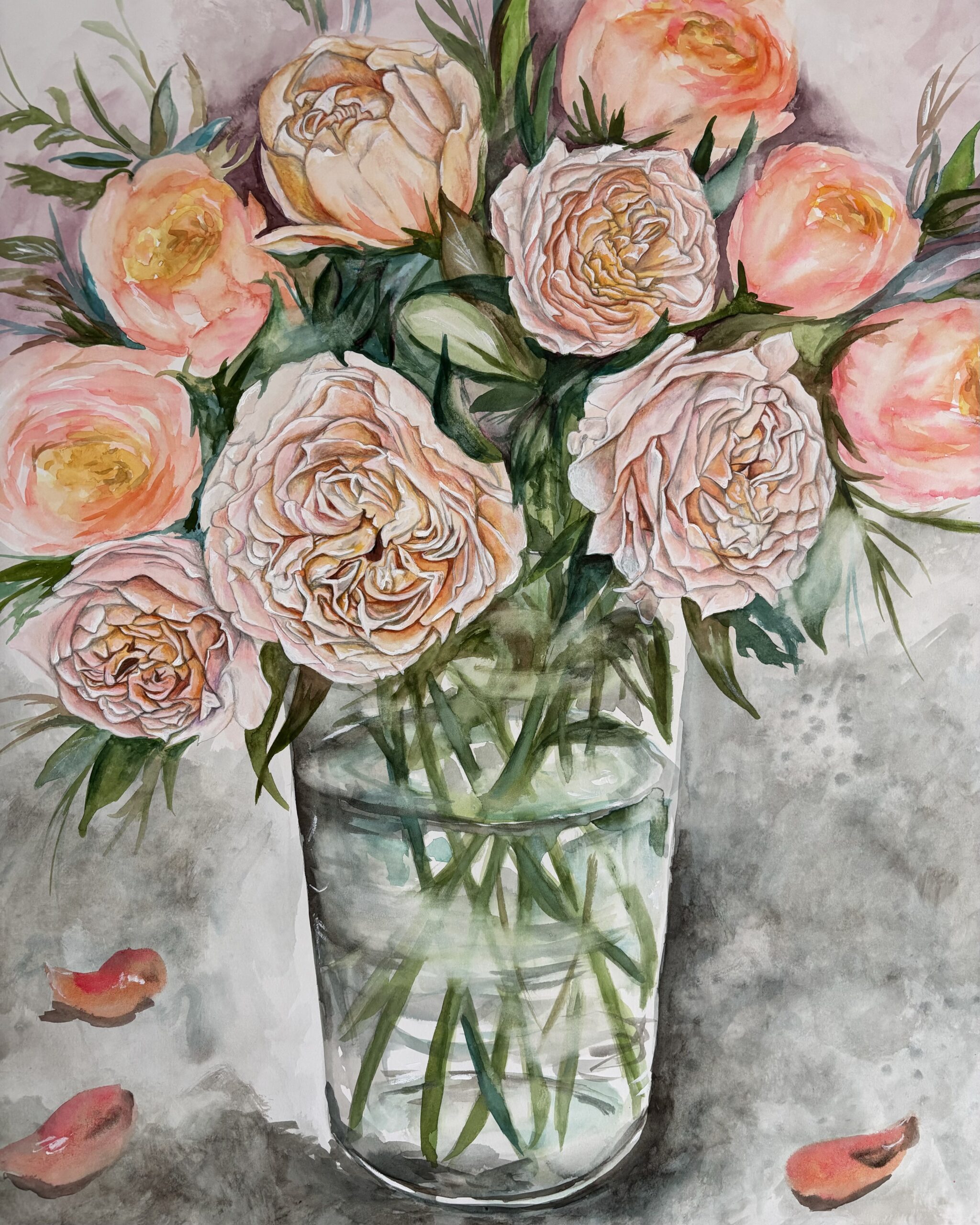 #0017 aquarell rosen lachsfarben / watercolor roses salmon