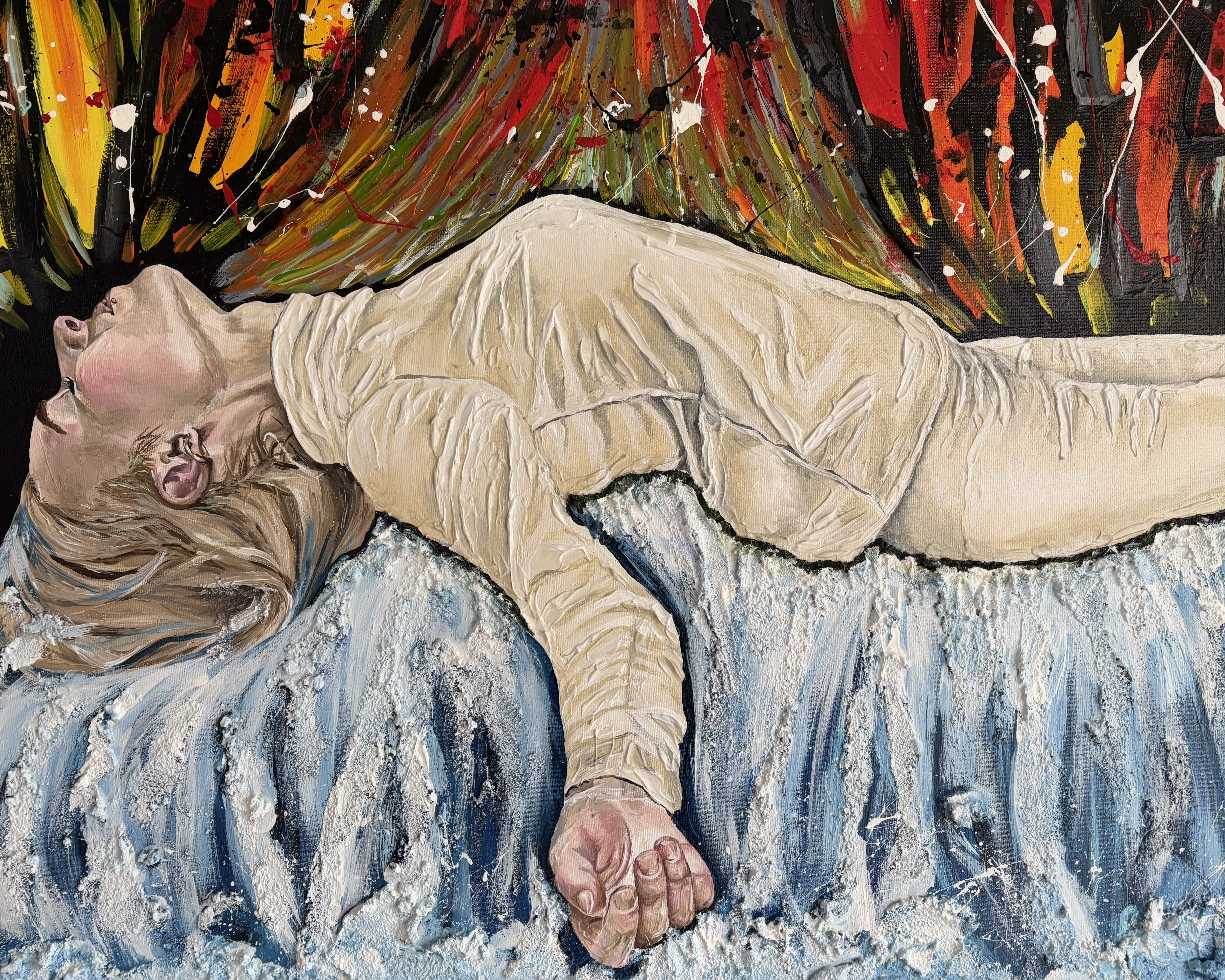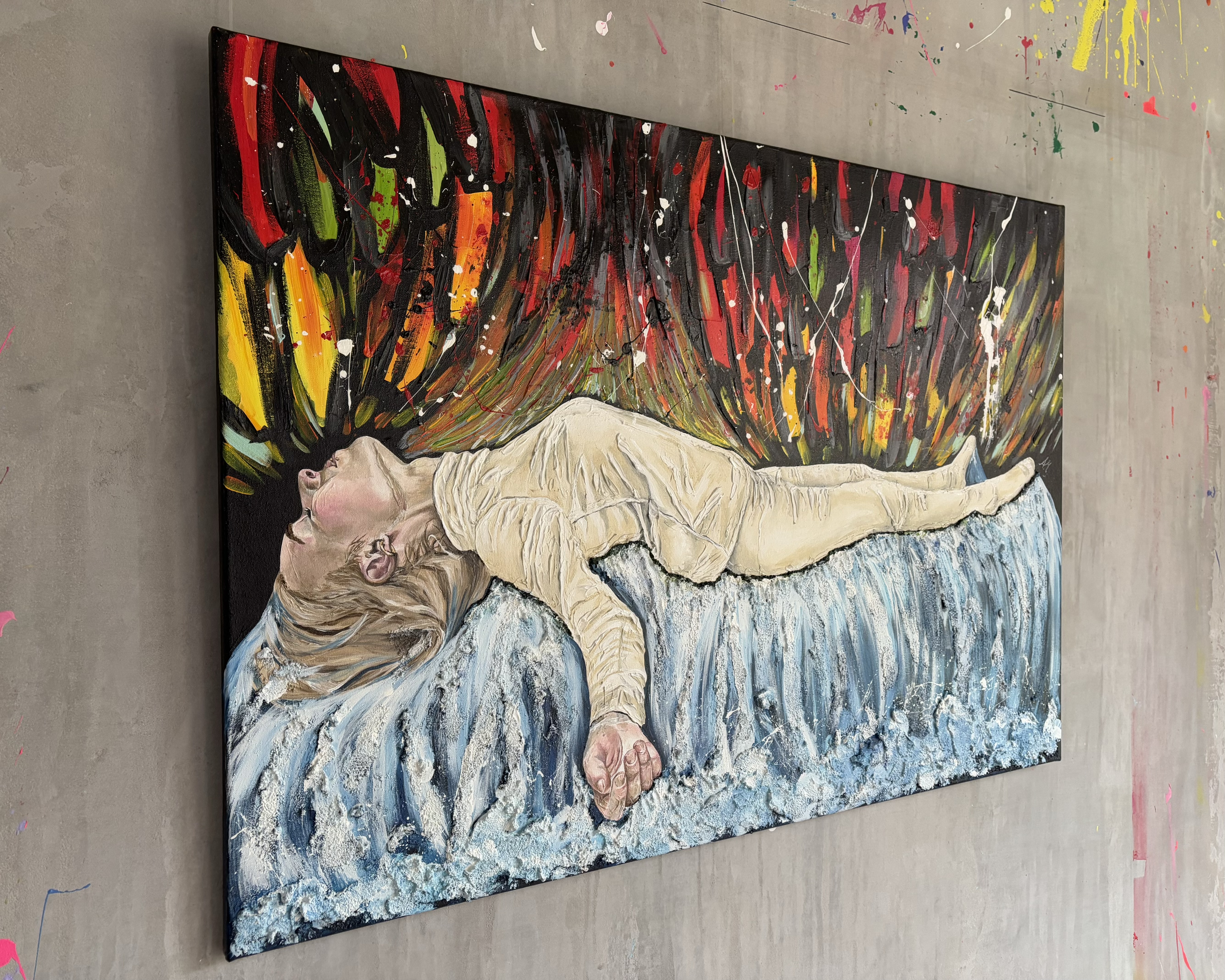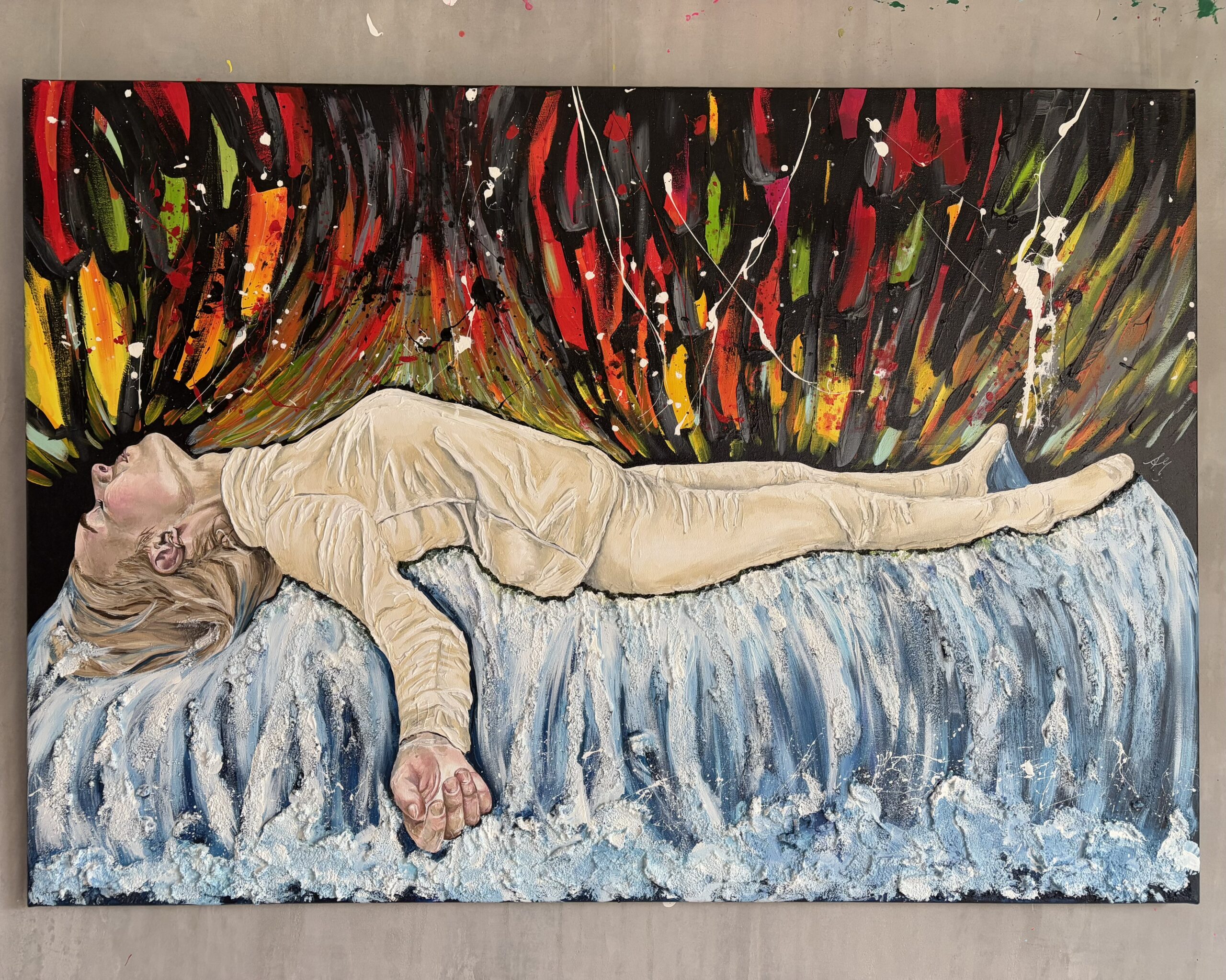 Acrylfarbe, Spachtelmasse und Strukturpaste Bimsmörtel auf Leinwand / Acrylic color, structuring paste pumice-mortar and modelling paste on canvas