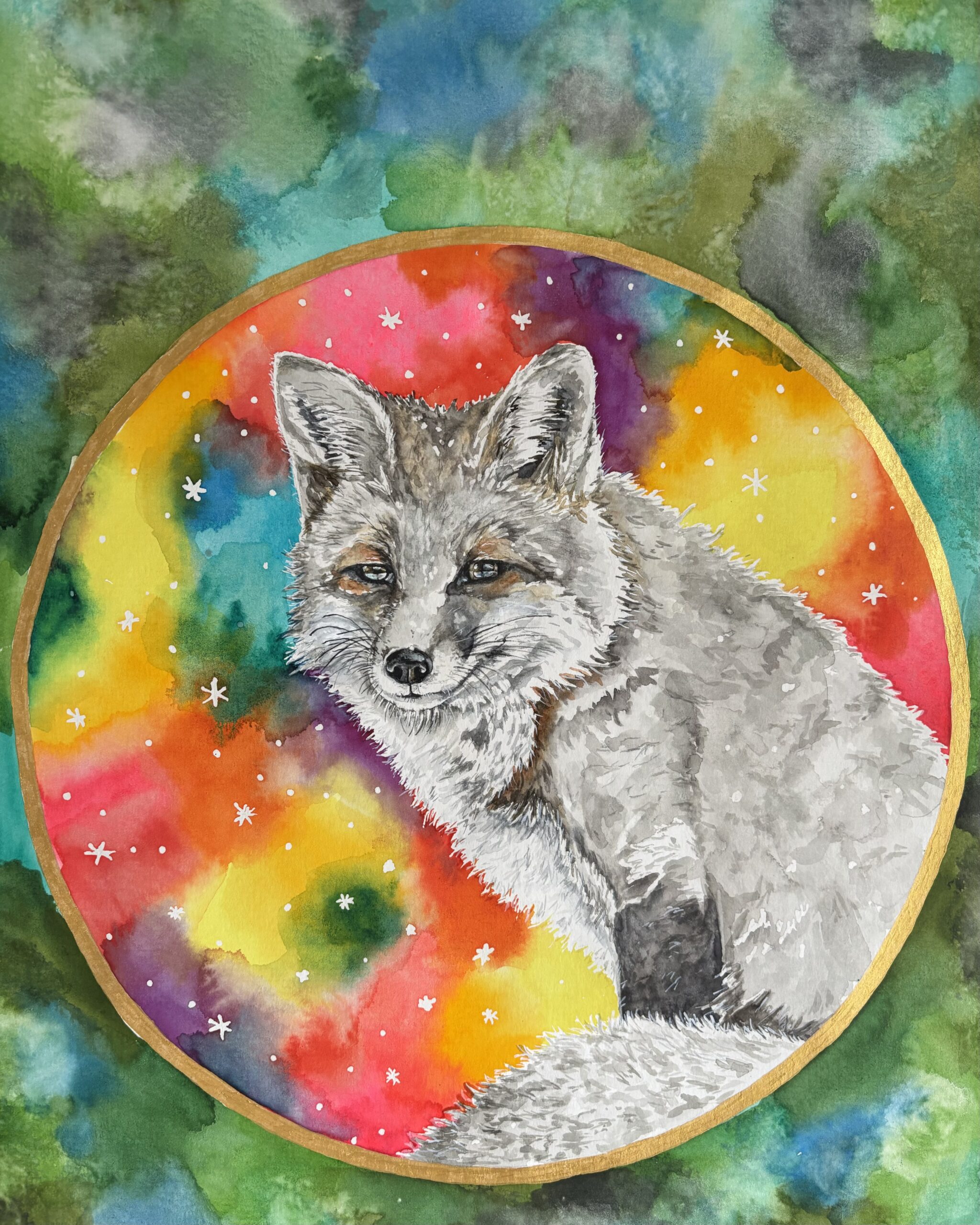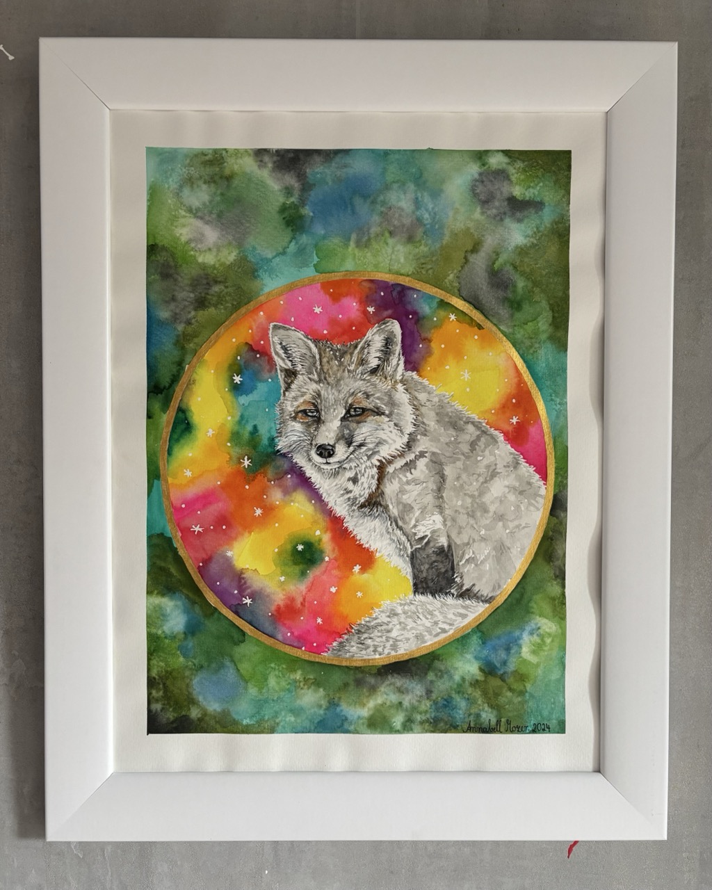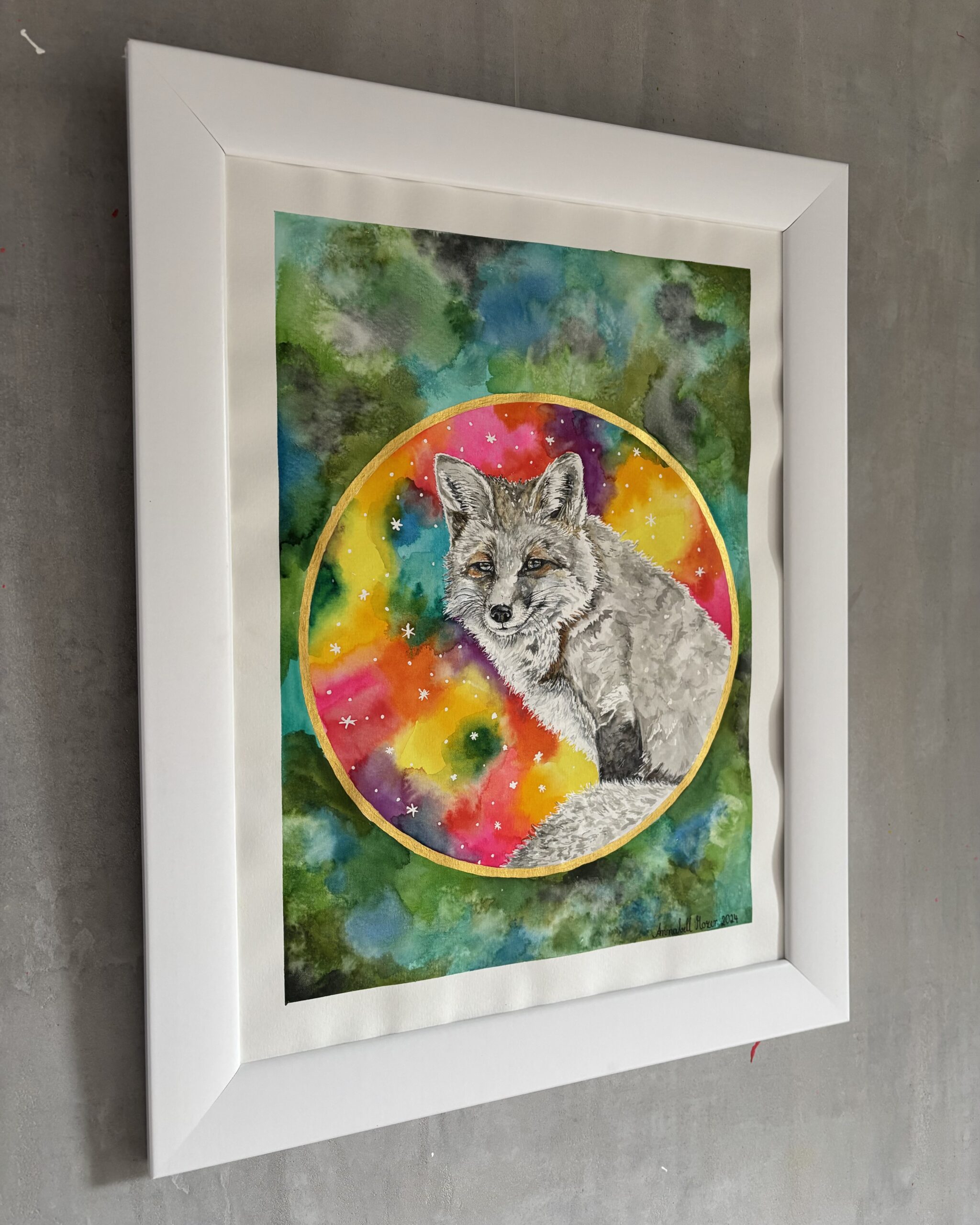 Aquarellfarbe und Klassik Gold Acrylfarbe auf Papier / Watercolor and acrylic gold on paper
