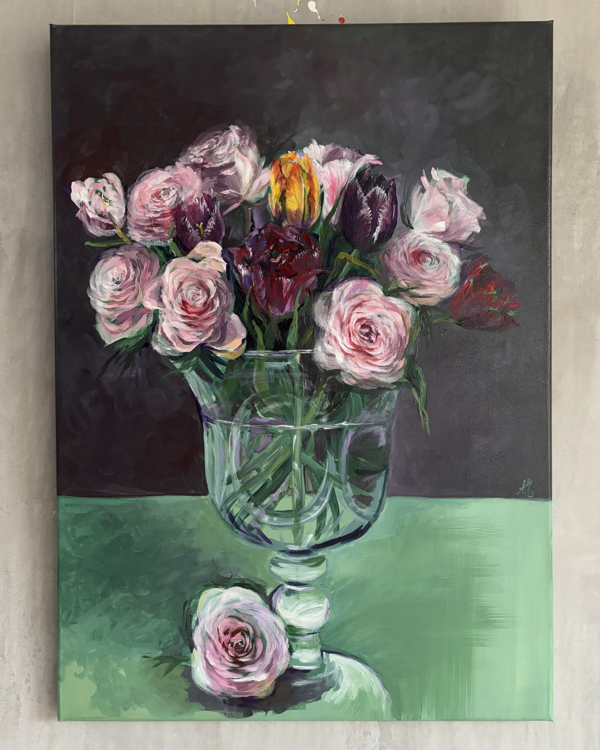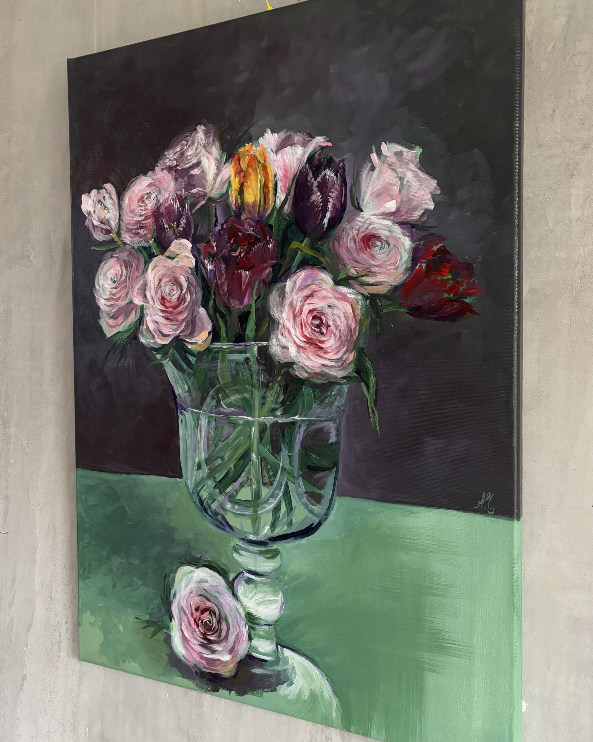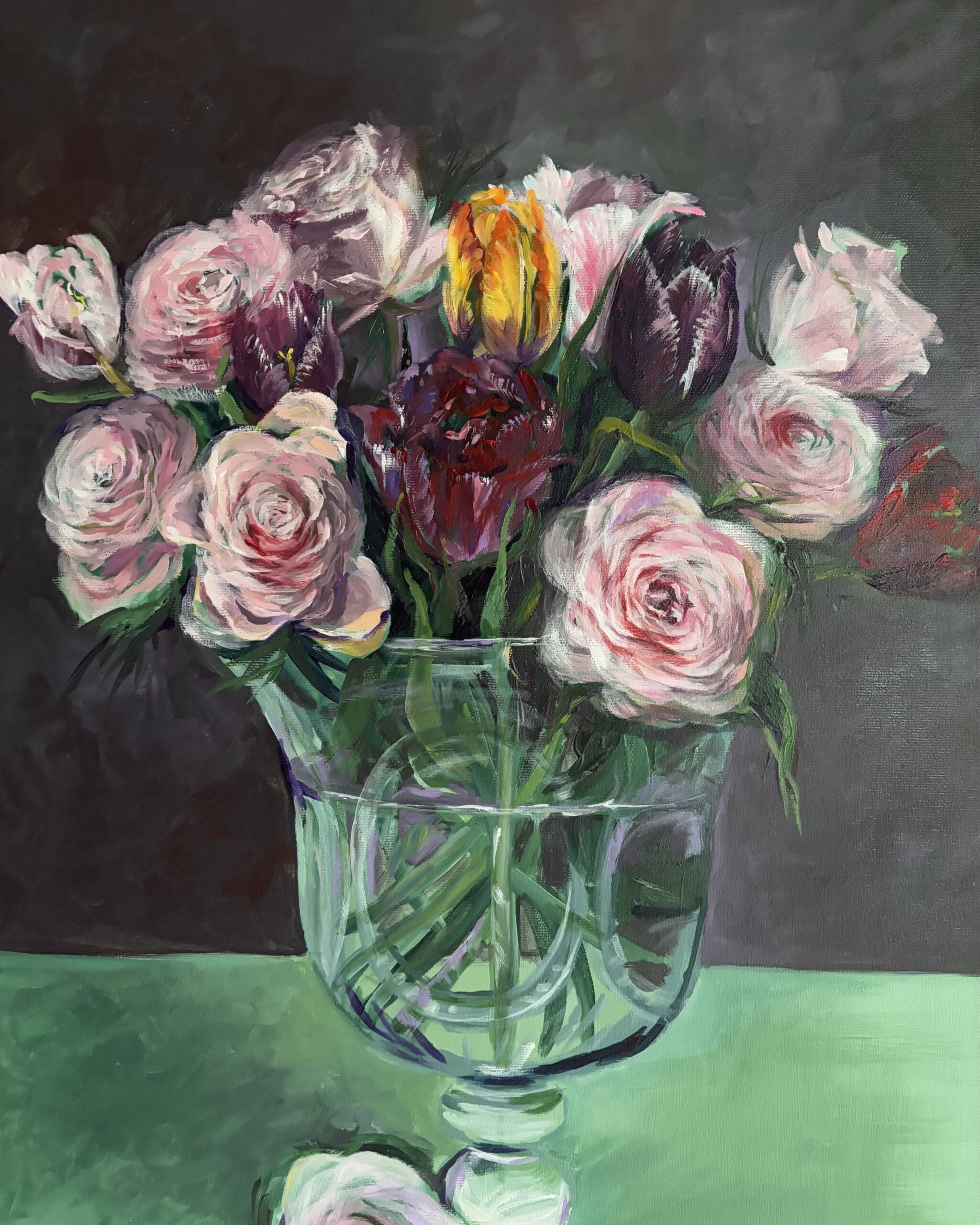 Schreibe die erste Rezension für „#0120 zarte rosen mit tulpen in einer vase / delicate roses with tulips in a vase“