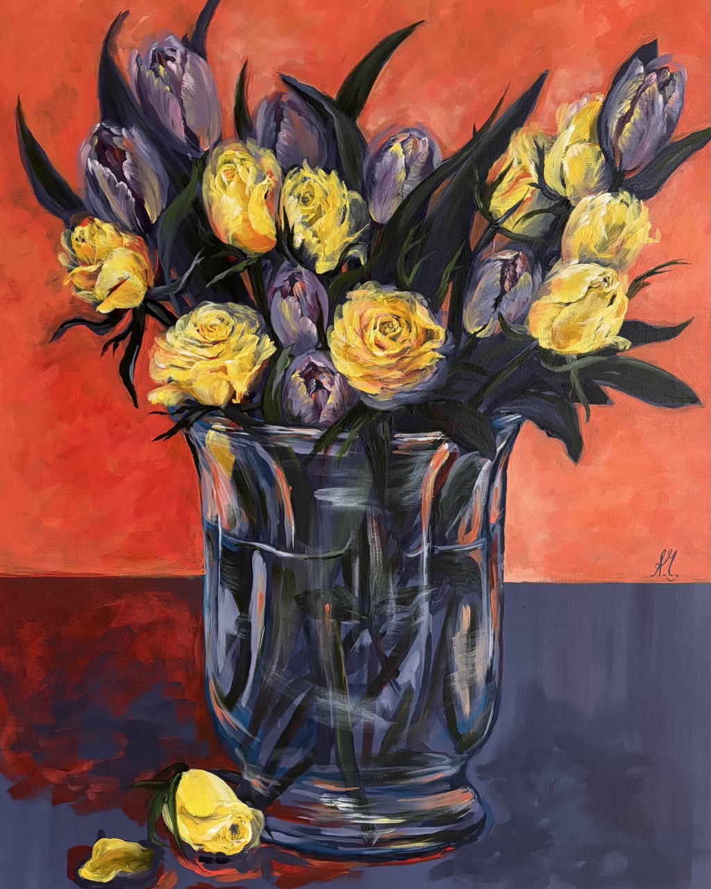 Schreibe die erste Rezension für „#0121 gelbe rosen mit tulpen in einer vase / yellow roses with tulips in a vase“