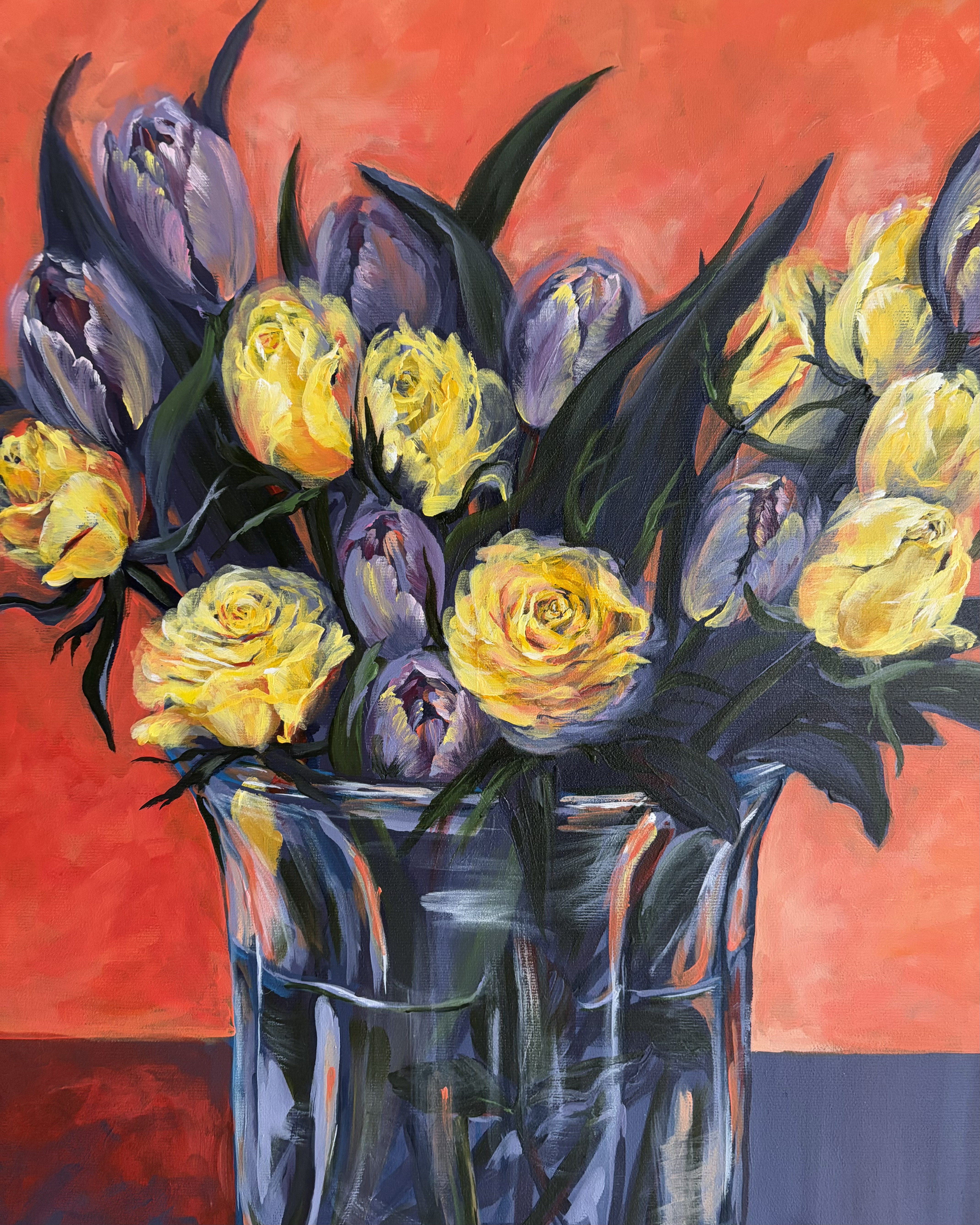 #0121 gelbe rosen mit tulpen in einer vase / yellow roses with tulips in a vase